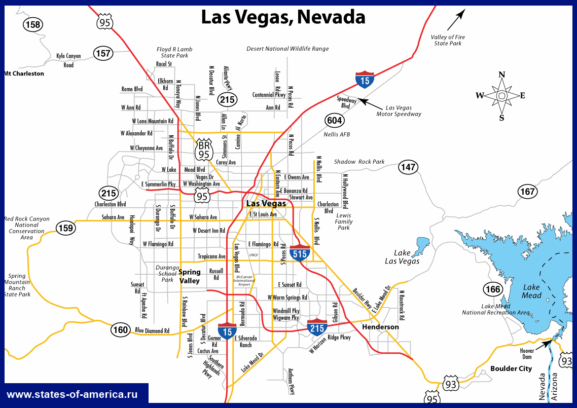 Впечатляющие каменные формации из песчаника ярко-красного цвета и серого известняка находятся к западу от Города Грехов. Стены каньона украшены петроглифами. В каньоне живет масса диких животных. Если повезет, можно их встретить. Есть две опции исследовать Ред Рок каньон: прогуляться по несложным и коротким пешим маршрутам или проехать на машине по живописной дороге, останавливаясь у смотровых площадках. Длина кольцевой дороги по территории парка составляет 21 км, движение одностороннее.